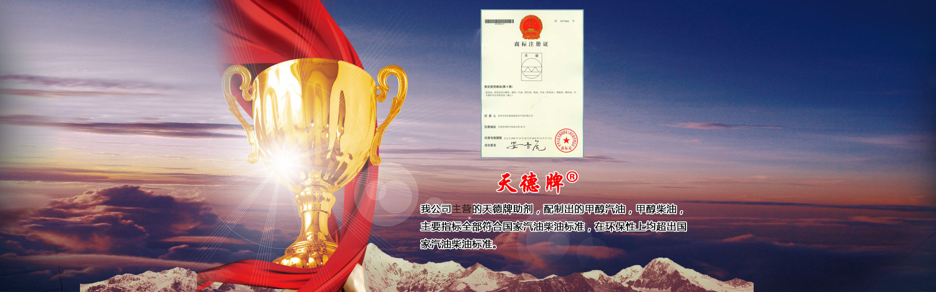 本公司主要產(chǎn)品有甲醇汽油添加劑、甲醇柴油添加劑、車用復(fù)合柴油添加劑、甲醇燃料油添加劑以及雙燃料控制器和油罐除水劑六大系列九種產(chǎn)品,具有廣闊的市場(chǎng)空間和經(jīng)濟(jì)效益。其中添加劑系列已在國家商標(biāo)局注冊(cè)為“天德牌”,天德牌問世二十多年來,在保證產(chǎn)品質(zhì)量的同時(shí),給廣大客戶帶來了可觀的經(jīng)濟(jì)利益,得到廣大油品行業(yè)用戶的一致好評(píng)…… 了解更多+